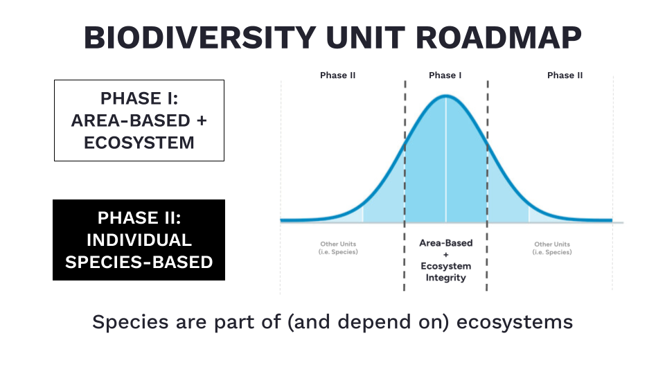 El punto no es cubrir todos los casos de uso para la biodiversidad, el punto es empezar en algún lugar ahora. Es urgente que preservemos los ecosistemas intactos hoy en día, por lo tanto, necesitamos una unidad que funcione ahora y que sea lo suficientemente aceptable como para comenzar con ella.