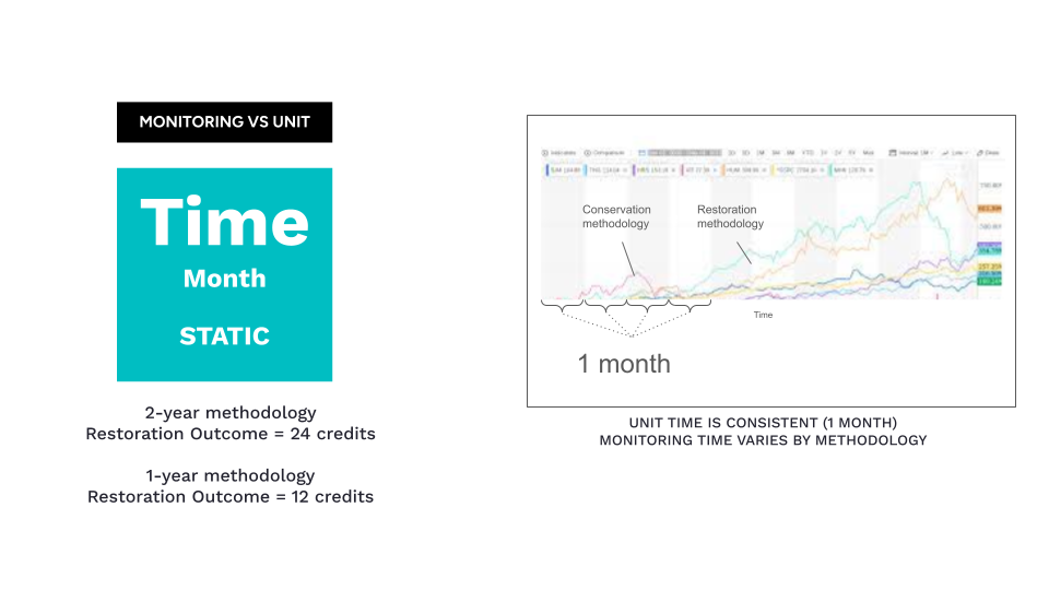 <figure><img src="https://content.gitbook.com/content/kSPGUCwFarVHIWdZA6TS/blobs/AWhUvZ6kYjMyvgLr2YCx/Voluntary%20Biodiversity%20Credit_%20Calculations%20(2).png" alt=""><figcaption><p>Monitoreo vs unidad de tiempo - Marco de Beneficios Ecológicos</p></figcaption></figure>